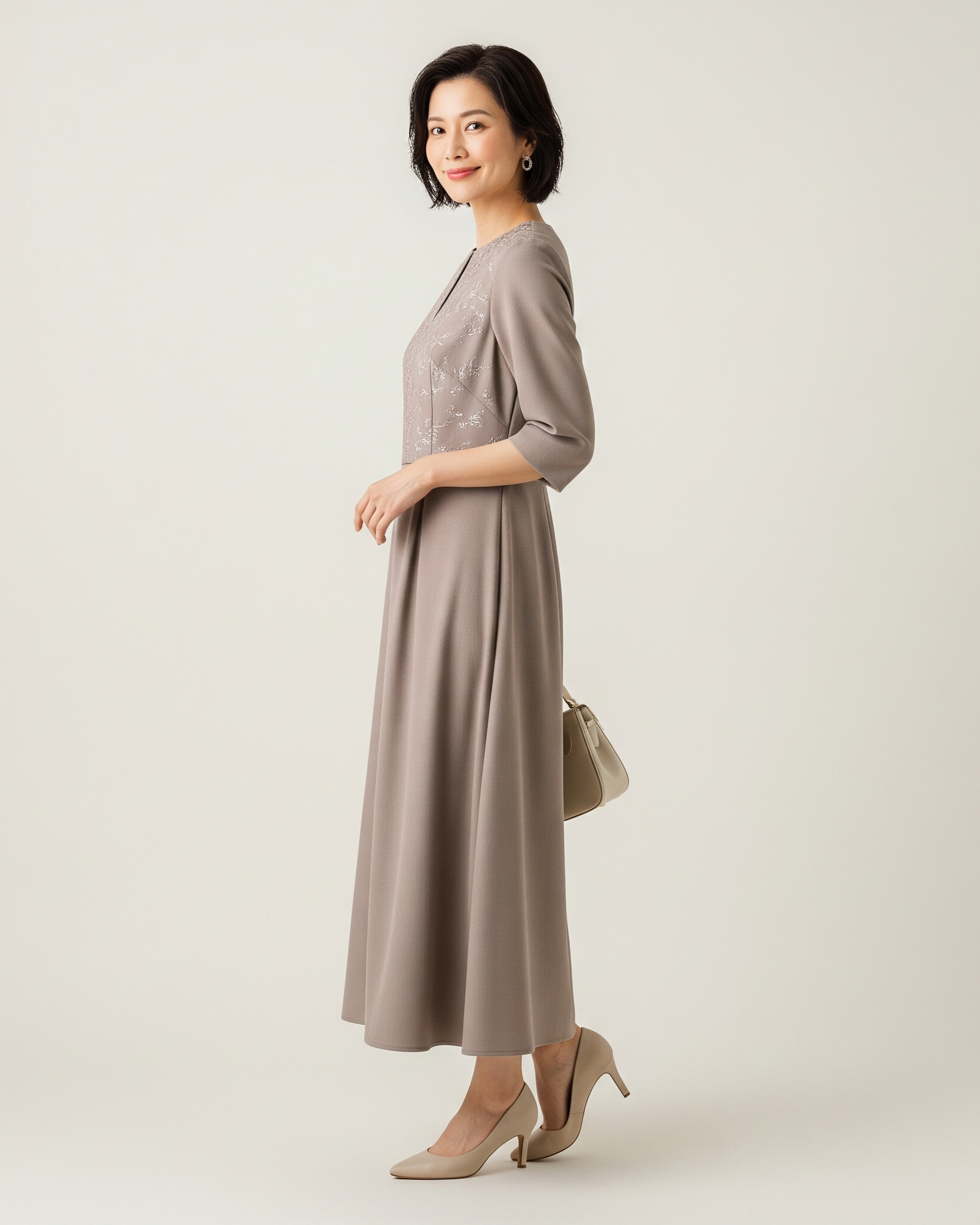 Elevate your style with this elegant V-neck midi dress. Crafted from a luxurious, flowing fabric, this dress falls gracefully to a sophisticated midi length, offering a perfect blend of modern style and timeless elegance. The flattering V-neckline and defined waist create a beautiful silhouette that is both comfortable and chic. Whether for a formal event or a special occasion, its versatile design and impeccable drape make it a stunning addition to any wardrobe.